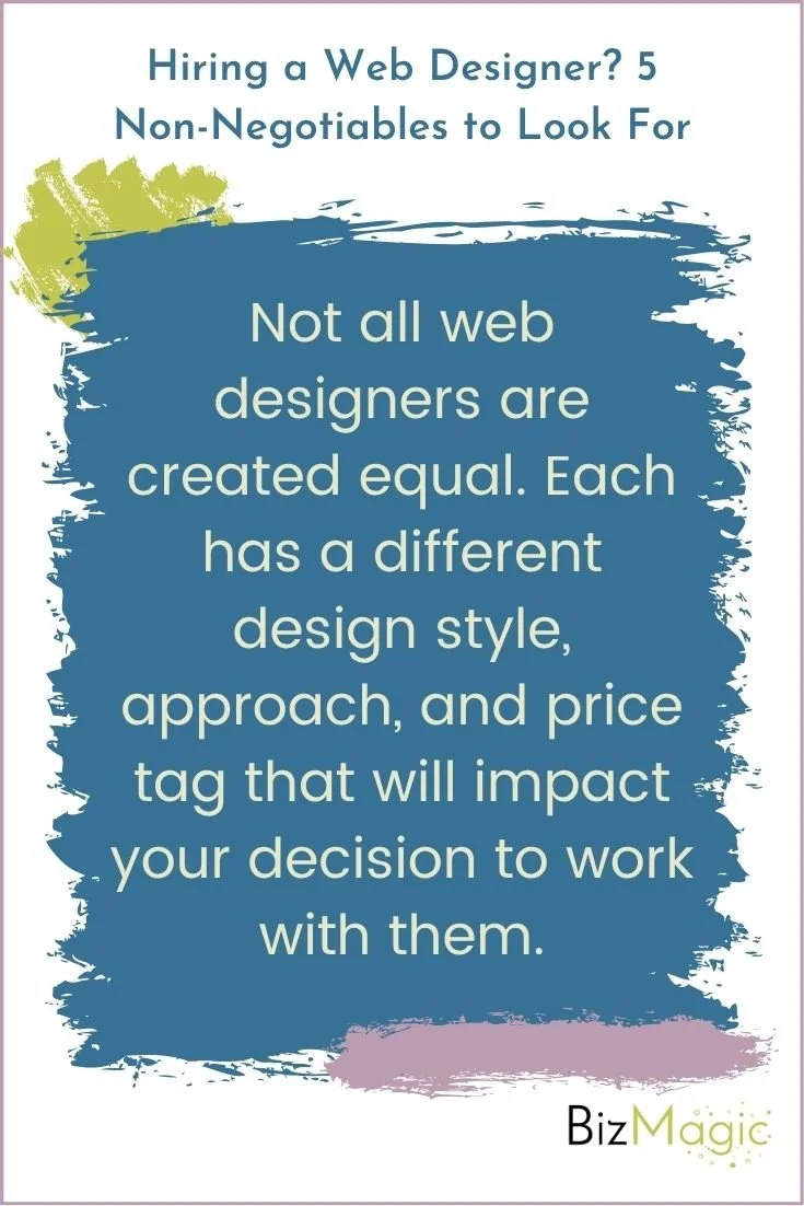 Just like anything in business, not all web designers are created equal. Each has a different design style, approach, and price tag that will impact your decision to work with them. Some designers work with specific web hosting platforms like WordPress or Showit, and some work in specific industries.